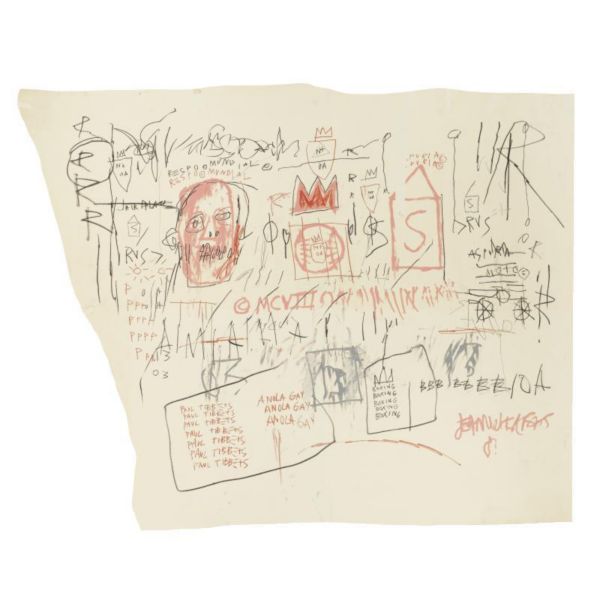 | Jean-Michel Basquiat • Gringo Pilot (Enola Gay) • 1981 • oil stick, marker, pencil & acrylic on paper • 81 x 103 inches at widest via Basquiat Biography |